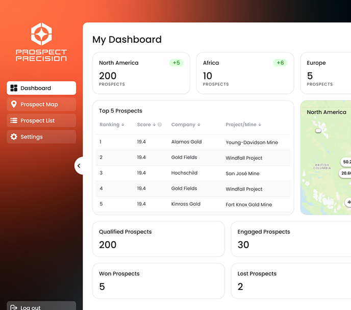 Prospect Precision is an analytics powered software that takes the guesswork out of sales in the mining industry. Our platform helps equipment and service suppliers quickly spot high-potential mining projects, so they can focus on opportunities that are most likely to move forward.